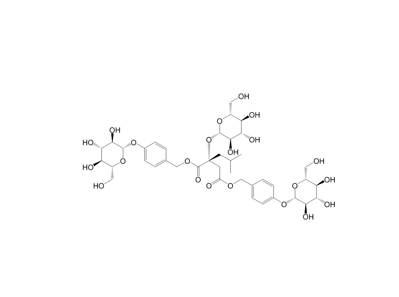 【產(chǎn)品名稱】 1,4-二[4- (葡萄糖氧) 芐基]-2-異丁基蘋果酸酯-2-葡萄糖苷