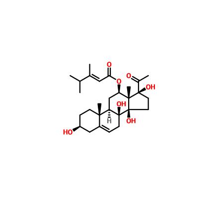 【英文別稱】 Pregn-5-en-20-one,12-[[(2E)-3,4-dimethyl-1-oxo-2-pentenyl]oxy]-3,8,14,17-tetrahydroxy-, (3b,12b,14b,17a)-
